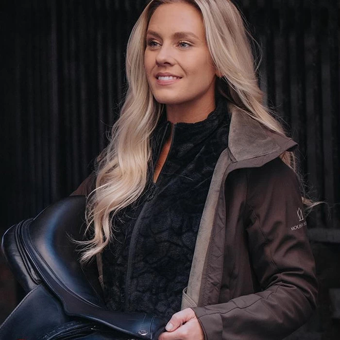 Functional water- and wind repellent softshell parkas with feminine fit. Lined with soft teddy, Long zipper opening at back and detachable hood.