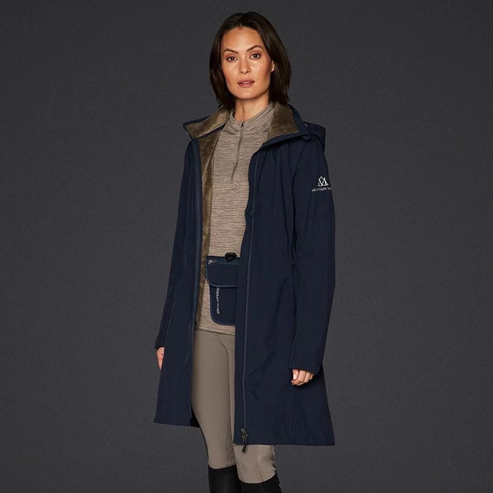 Functional water- and wind repellent softshell parkas with feminine fit. Lined with soft teddy, Long zipper opening at back and detachable hood.