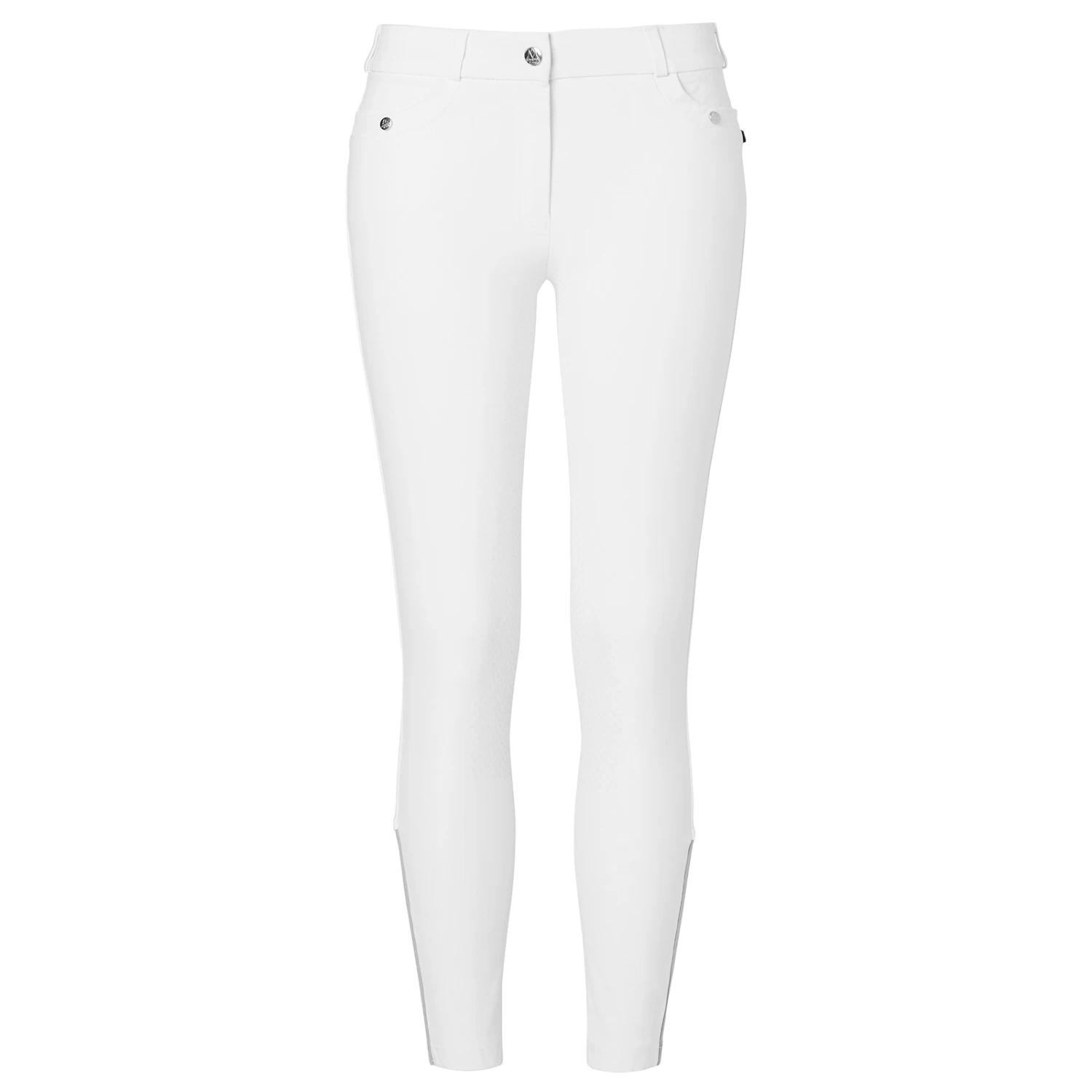 Elegant ladies breech with stylish detailing. Regular waist height and MH grip technology. Comfortable composition Super soft, durable, wrinkle resistant and easy care. MH grip technology. Triangle silicon application provides extra grip. Stretch-tech inserts at leg hems. Less bulk around the calves for better fit and comfort. Regular waist height with flat front. Front pocket with button closure. Gutos quality button at front. Available as grip technology knee and fullseat, knee patch.