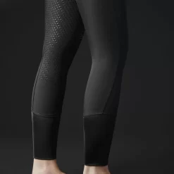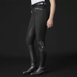 High waist breeches with fullseat silicone grip. Front pockets with Zipper closure. Flexible cuff at bottom.