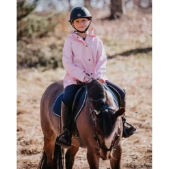 Waterproof raincoat with welded seams. Detachable hood, large front pockets. Riding slit at back and reflective details.