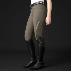 Regular high waist breeches with 3/4 full seat silicone grip. Front pockets with zipper closure. Flexible panel along leg.